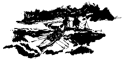 from The Treasury of Newfoundland Stories published, by Maple Leaf Mills Limited, in 1961Terrence O'Haggerty wiped his wind-chapped hand across his eyes and peered anxiously through the rain-spattered window of his little home perched high on the hillside of Ferryland, overlooking the Atlantic shore. "I'm nigh on twenty years settled here now" said he to his wife, "and I've never seen such a night of storm in all that time." Ellen O'Haggerty paused momentarily in her knitting to regard her husband across the heated dog-iron which seemed to hold the crimson glow against the gusts of wind howling down the chimney into the open fireplace. "It's a fearful night on land" said Ellen, "and much worst on the sea. May heaven protect the poor men who have to bear the brunt of this awful gale." Terrence O'Haggerty stooped, picked up a birch log, and threw it into the fireplace. "Indeed she's right", he mused, "Few ships, if any, will survive the fury of this gale." The wind continued to rise to hurricane fury involving land, sea and sky in a great confusion. The wind came howling down from the hill-tops rushed through the forest and raced along the shore-line, uprooting trees and breaking off chimney tops. Huge waves came rolling shoreward, sweeping away fish flakes and stages, and smashing into matchwood any other property within its mighty grasp. "This storm will be felt in every part of the island" mused Terrence O'Haggerty. "It will sweep the shore of Newfoundland from the Straits of Belle Isle to the southern-most tip." He pressed his face close against the small window near his stool and continued to look out into the fury of the night. His thoughts went back over many years, to the days of his youth, when he stood on the shores of old Ireland and watched the foaming seas breaking upon her headlands. Suddenly he was wrenched from the past by what he saw. "Come here, Ellen!" he shouted. "Come quickly. Heaven forbid if my eyes are deceiving me. Can you see a light moving up and down out there on the sea? And look, is that a distress signal just fired into the sky? It's moving up and down like the roll of the sea. If I'm right, that light can't be too far from the Isle of Buoys. The wind is blowing on the land tonight and the poor fellows won't have a chance if their ship hits the island. To make matters worse I doubt if we can do anything for them. The seas are running mountains high." Ellen O'Haggerty wiped the moisture from the window with the corner of her apron and looked out. Presently they were joined by their son Michael and daughter Margaret, who strained their eyes to confirm what their father had almost shouted a minute before. Margaret's sweetheart and prospective husband, Barney Finnigan, was at sea that night. What if he were on that very ship which even now was drifting onto the rocks as fast as the wind and sea could drive it. The anxiety grew stronger within her heart. Barney Finnigan was really on board that doomed ship and he would be lost to her forever. There was a superstition among the colonists in those days that on the nights of great storms dead seamen would stalk the shores carrying lights intended to mislead ships to their destruction, so that their crews would perish as they themselves had. If a corpse could rise from the dead, its face could not have been more pallid than Margaret O'Haggerty's as she watched the breaking seas, visualizing Barney Finnigan smashing against the jagged rocks of the Isle of Buoys.The thought of the inevitable tragedy overwhelmed her and she prayed to heaven to have mercy on the one she loved and to send him safely back to her. To picture a ship being dashed to pieces is enough to upset the strongest of hearts. The roar of the wind and the strength of the sea is unimaginable. If the Storm King, of whom poets have written, had his throne upon the Isle of Buoys that stormy night he could not have chosen a more strategic place for a battle between a ship, the rocks and the sea. The waves came charging high up the face of the jagged cliff and fell back in confusion, only to be flung back again with all the fury of an ocean bent on destruction. Terrence O'Haggarty in all his experience had never seen the like of it. This was a supreme moment and his manhood would be tested now as never before. "Man against the sea," he said with grim determination, and turned from the window. "A rescue party will have to be organized to take the crew off that ship. Get my long boots and my heavy reefer, Ellen. There's no time to waste if those men are to be saved." Despite his family's protests, O'Haggerty set about his mission with a will to win, and soon he had many lanterns flashing along the shoreline.Out at sea, Captain Langley breathed a prayer of thanks that is distress signal had been seen on land. But did these blazing lanterns really mean that Captain Langely and his crew would be rescued from a watery grave that stormy night? If not, if was no fault of Ferryland's, for at that moment fifty men strong and brave were hurrying toward the Island of Bouys. "Those men must be rescued," cried O'Haggerty, "or we'll die the death of heroes!" The task that lay ahead of that skiff's crew was a herculean one, but they set out with courage and determination. "Settle down to it, boys," shouted O'Haggerty above the noise of the storm. "Swing your weight out of these oars, for every minute counts." With every ounce of strength at their command the men plier their oars and pulled towards the doomed ship while towering waves threatened to swamp their frail boat at any minute. While the men in the rescue skiff strove to shorten the distance between them and the Isle of Bouys, the stricken ship continued to pound on the jagged rocks. At such a sight old Demon Derision might well have cried out with a loud voice "I'll swallow you up with a mighty sea." But what cared those hardy fishermen for the wrath of that storm? They were as much at ease on a storm-tossed ocean as 