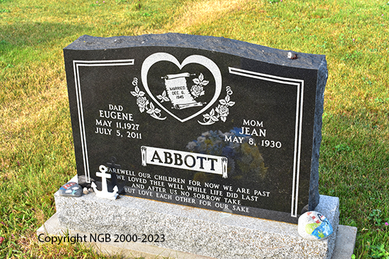 | EUGENE ABBOTT Born: May 11, 1927 Died: July 5, 2011 Married: Dec 6. 1945 |