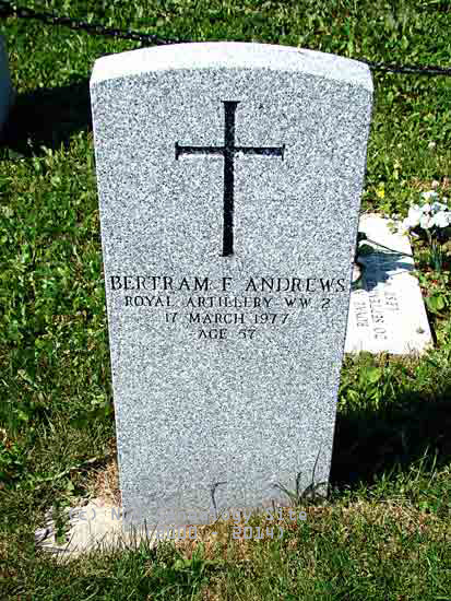 | Bertram F. Andrews Royal Artillery WW II 17 Mar 1977 Age 57 |