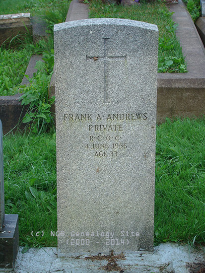 | Frank A. Andrews Private Royal Canadian Ordnance Corps 4 June 1956 Age 33 |