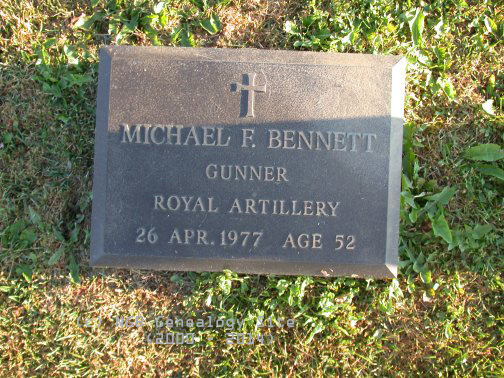 | Michael F. Bennett Gunner Royal Artillery 26 April 1977 Age 52 |