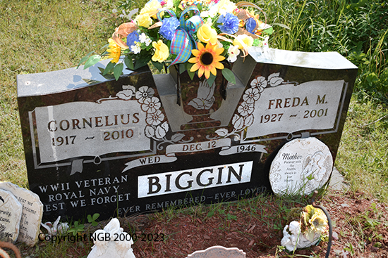 | CORNELIUS BIGGIN 1917 - 2010 FREDA M. BIGGIN 1927 - 2001 Married: Dec 12, 1946 |