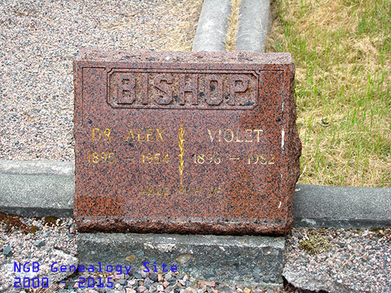 | BISHOP Dr. Alex and Violet 1896-1954 ~ 1896-1982 |