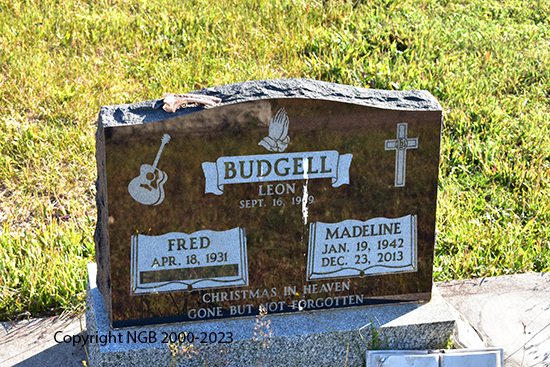 | MADELINE BUDGELL Born: Jan 19, 1942 Died: Dec 23, 2013 LEON BUDGELL Sept 16, 1969 Wife of Fred Budgell |