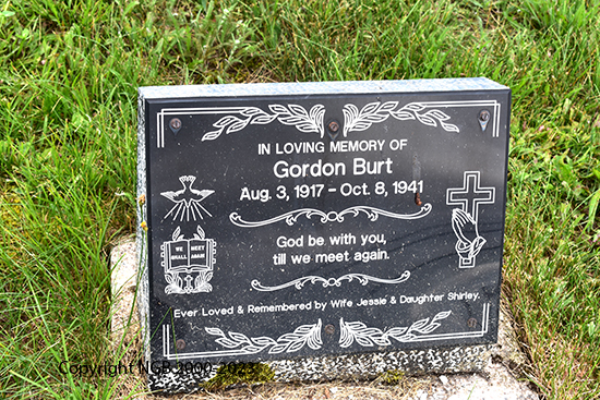 | GORDON BURT Born: Aug 3, 1917 Died: Oct 8, 1941 Husband of Jessie Burt |
