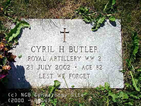 | Cyril H. Butler Royal Artillery WW II 23 Jul 2002 Age 82 Lest We Forget |