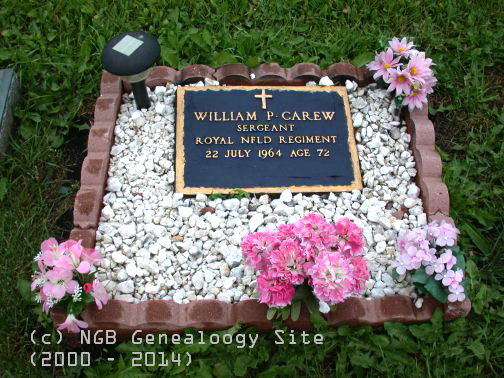 | William P. Carew Sergeant Royal Newfoundland Regiment WW I 22 Jul 1964 Age 72 |