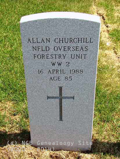 | Allan Churchill Newfoundland Overseas Forestry Unit WW II 16 Apr 1988 Age 85 |