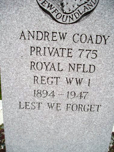 | Andrew Coady Private # 775 Royal Newfoundland Regiment WW 1 1894 ~ 1947 Lest We Forget |