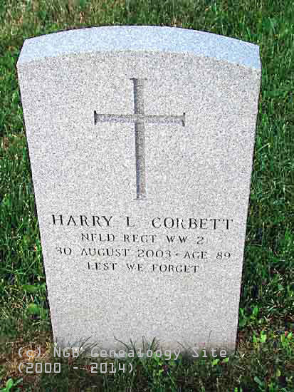 | Harry L. Corbett Newfoundland Regiment WW II 30 Aug 2003 Age 89 Lest We Forget |