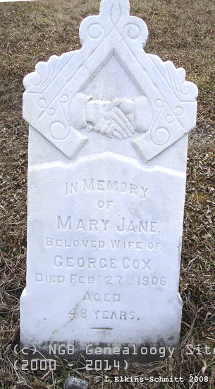 MARY JANE COX Died Feb. 27th 1906 Aged 48 Years |