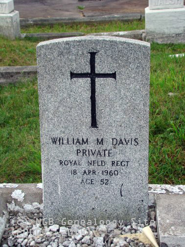 | William M. Davis Private Royal Newfoundland Regiment 18 Apr 1960 Age 52 |