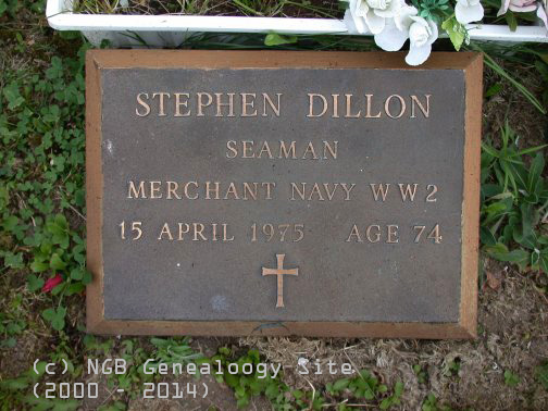 | Stephen Dillon Seaman Merchant Navy ~ WW II 15 Apr 1975 Age 74 |