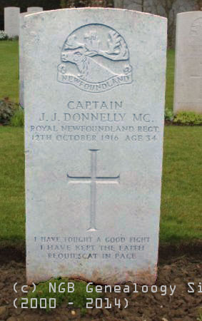 | Captain J.J. Donnelly MC Royal Newfoundland Regiment 12 Oct 1916 Age 34 ~ I Have Fought A Good Fight I Have Kept The Faith Requiescat In Pace |