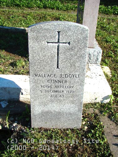 | Wallace J. Doyle Gunner Royal Artillery 5 December 1979 Age 63 |