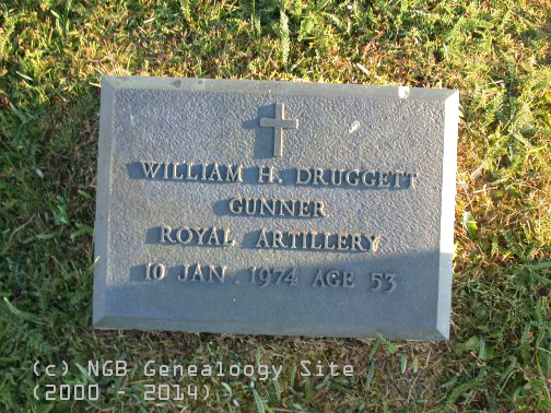 | William H. Druggett Gunner Royal Artillery 10 Jan 1974 Age 53 |