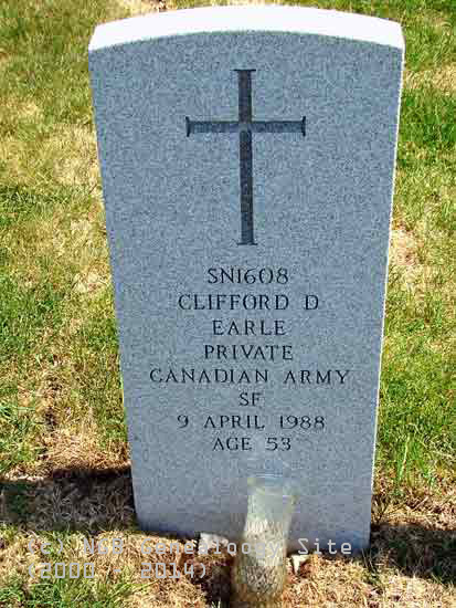 | SN1608 Clifford D. Earle Private - Canadian Army 9 Apr 1988 Age 53 |