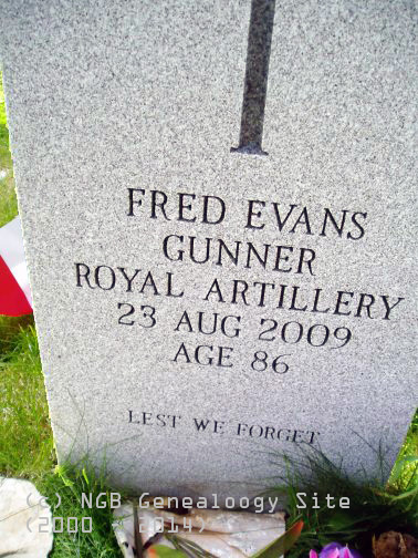 | Fred Evans Gunner Royal Artillery 23 Aug 2009 Age 86 ~ Lest We Forget |