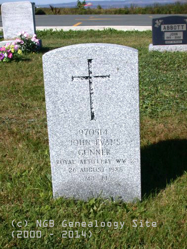 | 970514 John Evans Gunner Royal Artillery ~ WW II 26 Aug 1988 Age 81 |