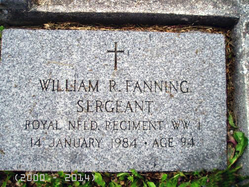 | William R. Fanning Sergeant Royal Newfoundland Regiment WW 1 14 Jan 1984 Age 94 |