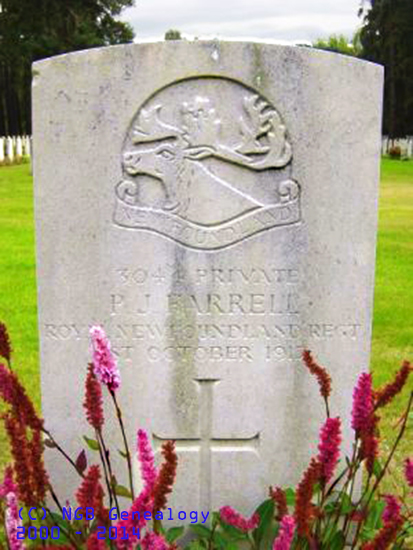 | 3044 Private Patrick J. Farrell Royal Newfoundland Regiment 1 Oct 1917 Brookwood Cemetery Surrey, England |