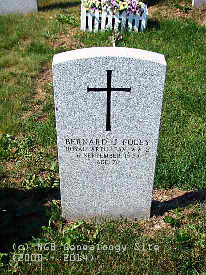 | Bernard J. Foley Royal Artillery WW II 6 Sep 1999 Age 76 |