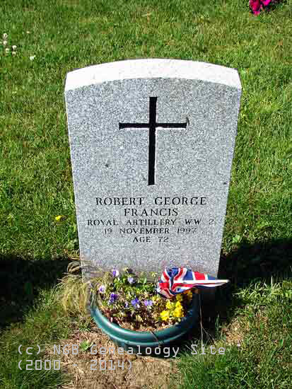 | Robert George Francis Royal Artillery WW II 19 Nov 1997 Age 72 |