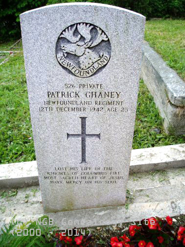 | 526 Private Patrick Ghaney Newfoundland Regiment 12 Dec 1942 Age 25 ~ Lost His Life In The Knights Of Columbus Fire Most Sacred Heart Of Jesus Have Mercy On His Soul |