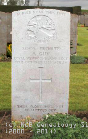 Spot 2005 Private A. Guy Royal Newfoundland Regiment 12 Oct 1916 Age 26 ~ Their Glory Shall Not Be Blotted Out |