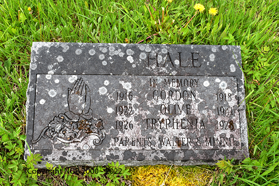 | GORDON HALE 1916 - 1918 OLIVE HALE 1922 - 1941 TRYPHENIA HALE 1926 - 1928 Children of Walter & Minnie Hale |