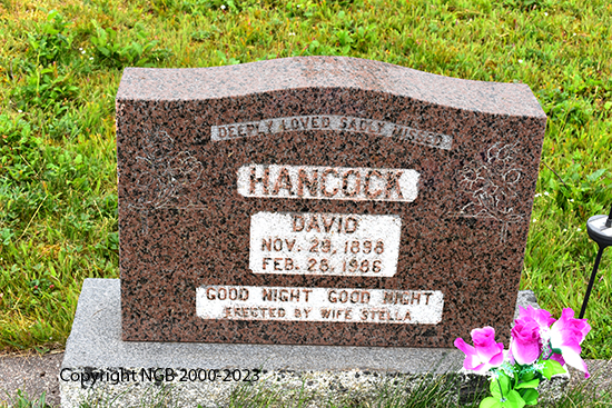 | DAVID HANCOCK Born: Nov 29, 1898 Died: Feb 28, 1986 Husband of Stella Hancock |