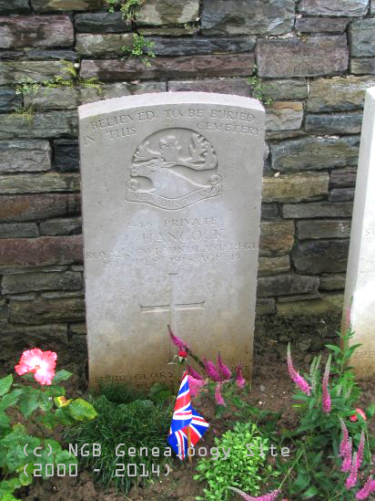 | 946 Pte J. Hancock Royal Newfoundland Regiment WW I 1 Jul 1916 Age 18 |
