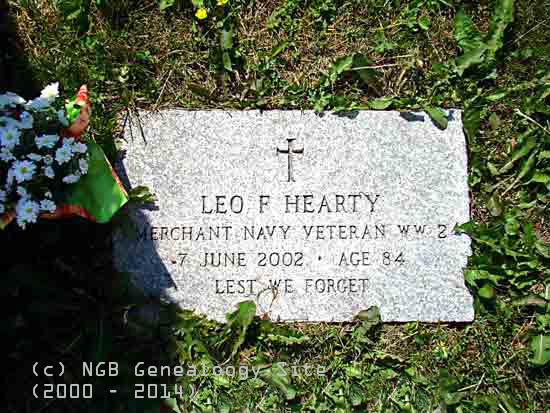 | Leo F. Hearty Merchant Navy Veteran WW II 7 Jun 2002 Age 84 Lest We Forget |