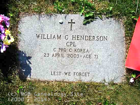 | William G. Henderson Corporal - C. Pro C. Korea 23 Apr 2003 Age 71 Lest We Forget |