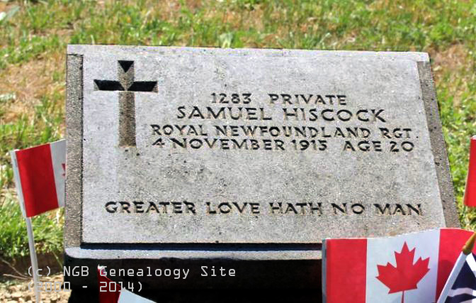 | 1283 Private Samuel Hiscock Royal Newfoundland Regiment 4 Nov 1915 Age 20 ~ Greater Love Hath No Man |