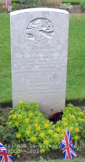 | 1634 Private M.J. Holland Royal Newfoundland Regiment WW I 1 Jul 1916 Age 19 |