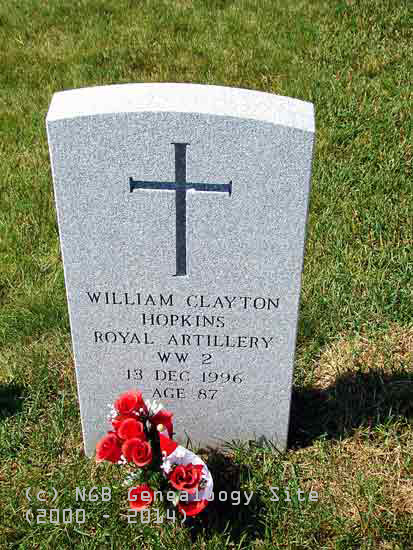| William Clayton Hopkins Royal Artillery WW II 13 Dec 1996 Age 87 |