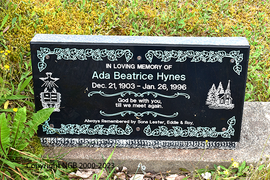 | ADA BEATRICE HYNES Born: Dec 21, 1903 Died: Jan 26, 1996 |