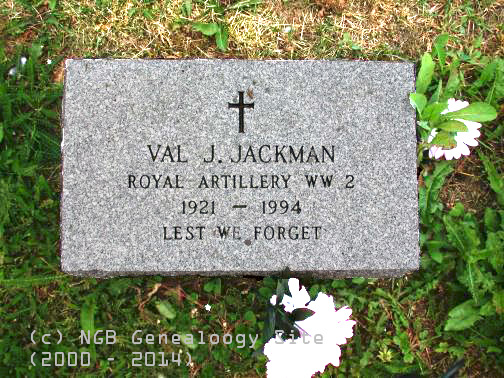 | Val J. Jackman Royal Artillery ~ WW II 1921 ~ 1994 Lest We Forget |