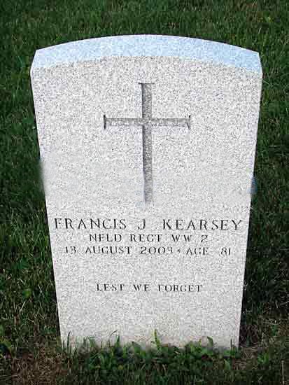 | Francis J. Kearsey Newfoundland Regiment WW II 13 Aug 2003 Age 81 Lest We Forget |