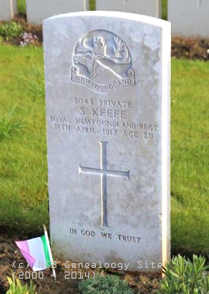 | 2043 Private S. Keefe Royal Newfoundland Regiment 18 Apr 1917 Age 20 ~ In God We Trust |