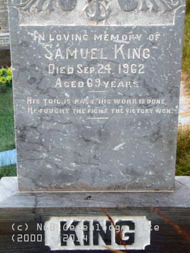 | Samuel King Royal Navy Died Sep 24, 1962 Aged 69 Years ~ His Toil Is Past, His Work Is Done He Fought The Fight, The Victory Won |