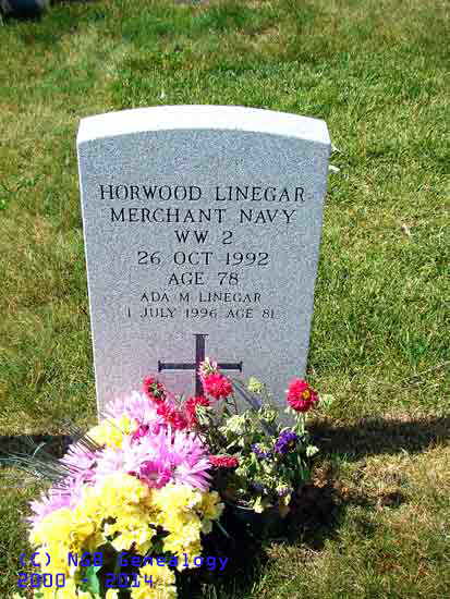 | Horwood Linegar Merchant Navy WW II 26 Oct 1992 Age 78 Ada M. Linegar 1 Jul 1996 Age 81 |