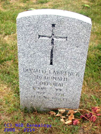 | Donald Lawrence MacDonald Corporal Royal Canadian Electrical/Mechanical Engineers WW II 1910 ~ 1991 Lest We Forget |