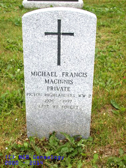 | Michael Francis MacInnis Private Picton Highlanders ~ WW II 1920 ~ 1997 Lest We Forget |