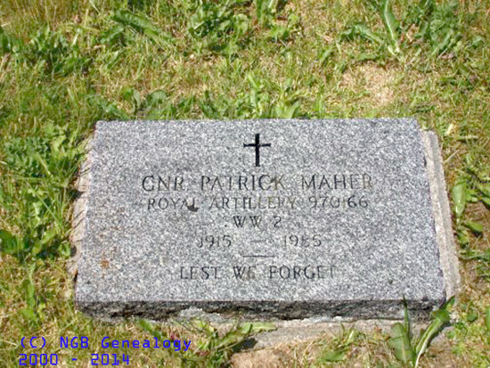 | Patrick Maher Gunner ~ 970166 Royal Artillery ~ WW II 1915 ~ 1985 Lest We Forget |