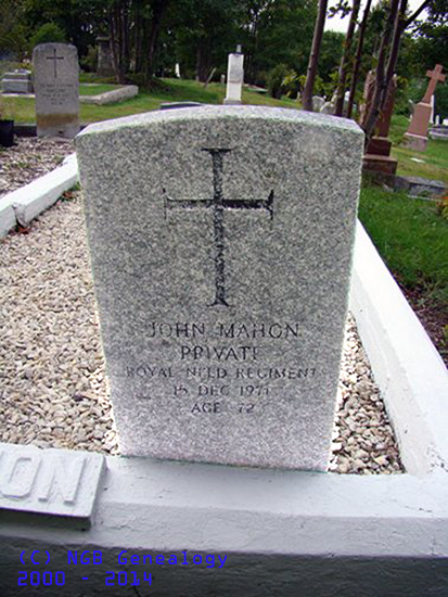| John Mahon Private Royal Newfoundland Regiment 15 Dec 1971 Age 72 |