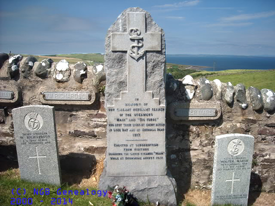 Seamen Of the Steamers Main and Rio Verde Who lost their lives by enemy action In Luce Bay and at Grummag Head 1917 Erected by subscription from visitors |