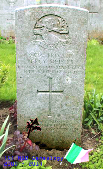 | 2374 Private Percy Mercer Royal Newfoundland Regiment 14 Apr 1917 Age 18 ~ Have Mercy Upon Him, Lord And Let Perpetual Light Shine Upon Him |