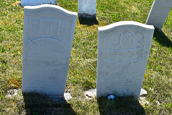 | SARAH JANE MITCHELMORE Died: Jan 24th 1962 Aged: 73 Years 6 Months THOMAS MITCHELMORE SR. Died: Jan 14th 1965 Aged: 79 Years 10 Months |